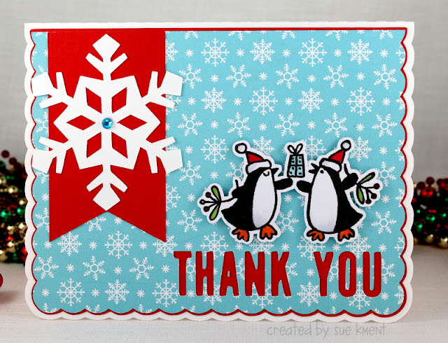 Beautiful color combo & darling little penguins! Love these sweet thank you cards, Sue! Glad to have worked with you on PBSC--take care! I'll still be using my PB stamps, so you may see me in the gallery!